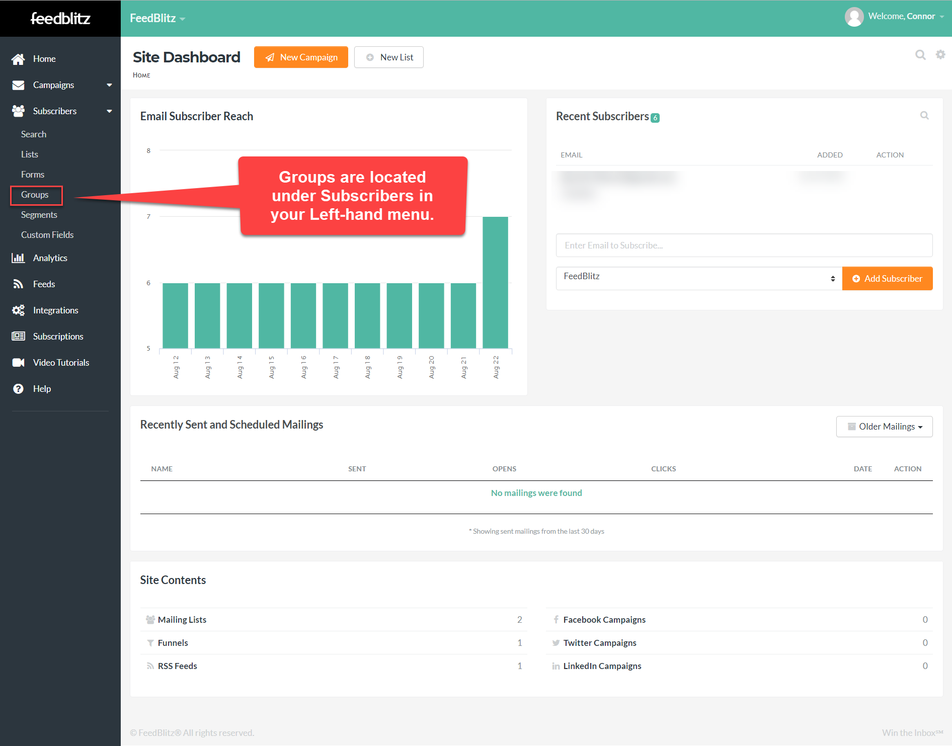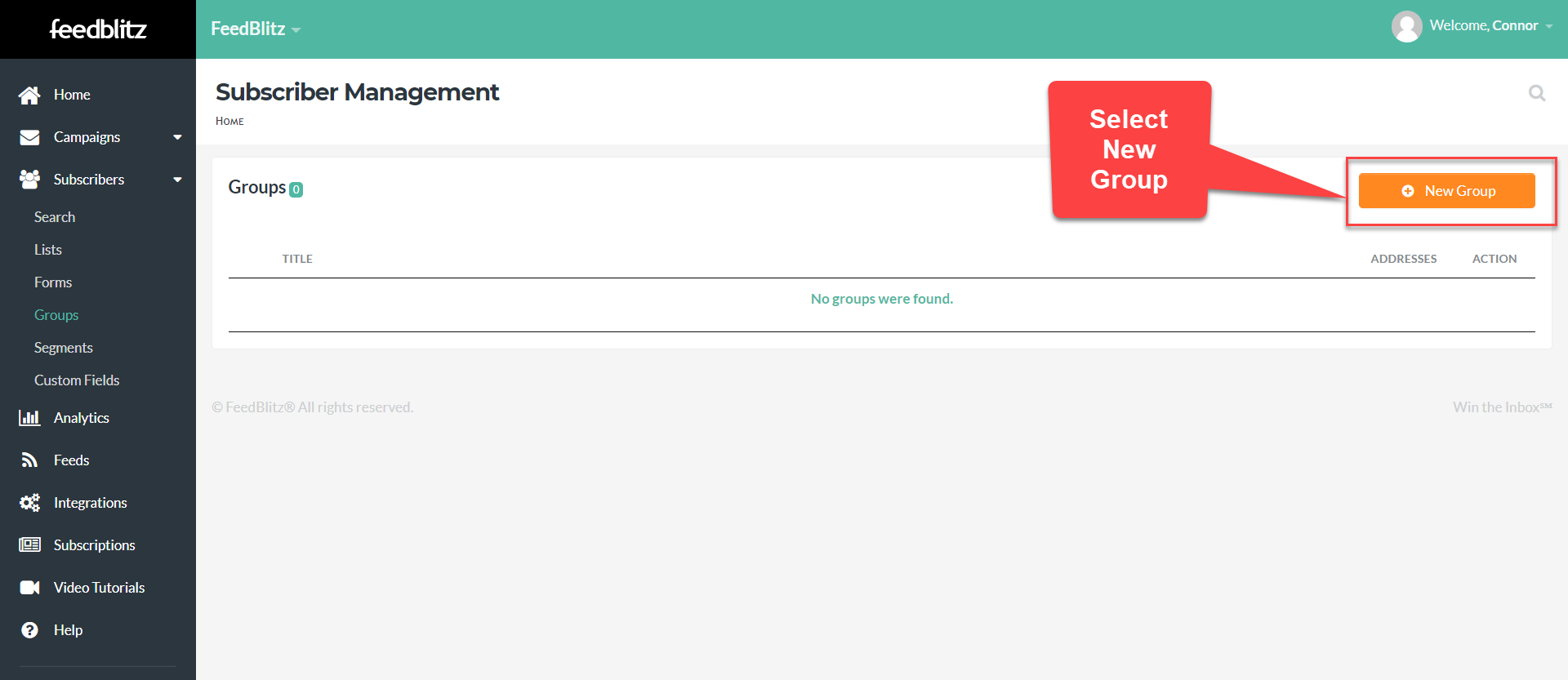 Begin by creating a group, using Subscribers > Groups from your Left-hand menu.